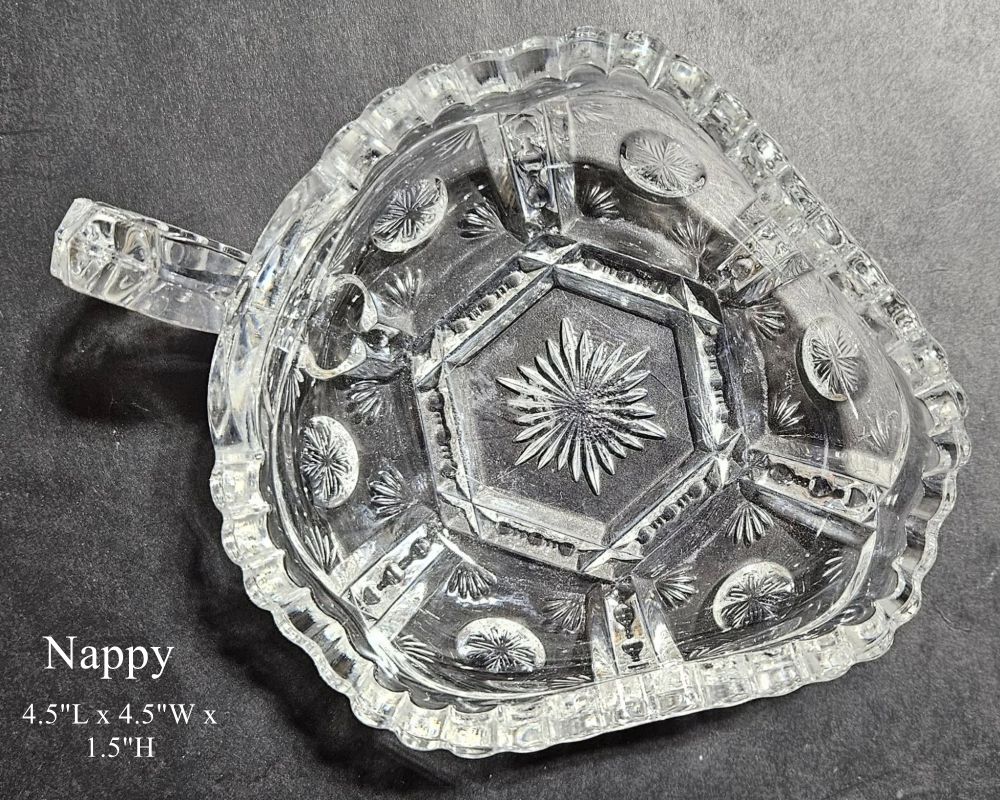 Contributor: Rene Campbell 12-5/16" diameter, 5-1/16" high without base and 10-1/16" high with base.
