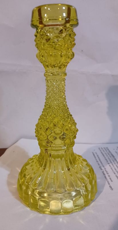 Contributor: Pat Clark - Bellflower Pressed Glass by Ardis Slater ... gives a height of 9.58 inches mentions green and pink examples.