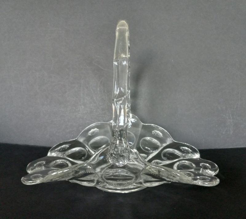 Contributor: Brad Gougeon 9.5" tall by 10" wide at the handle by 12.25" across the bottom. Fenton product. Fenton 1950s