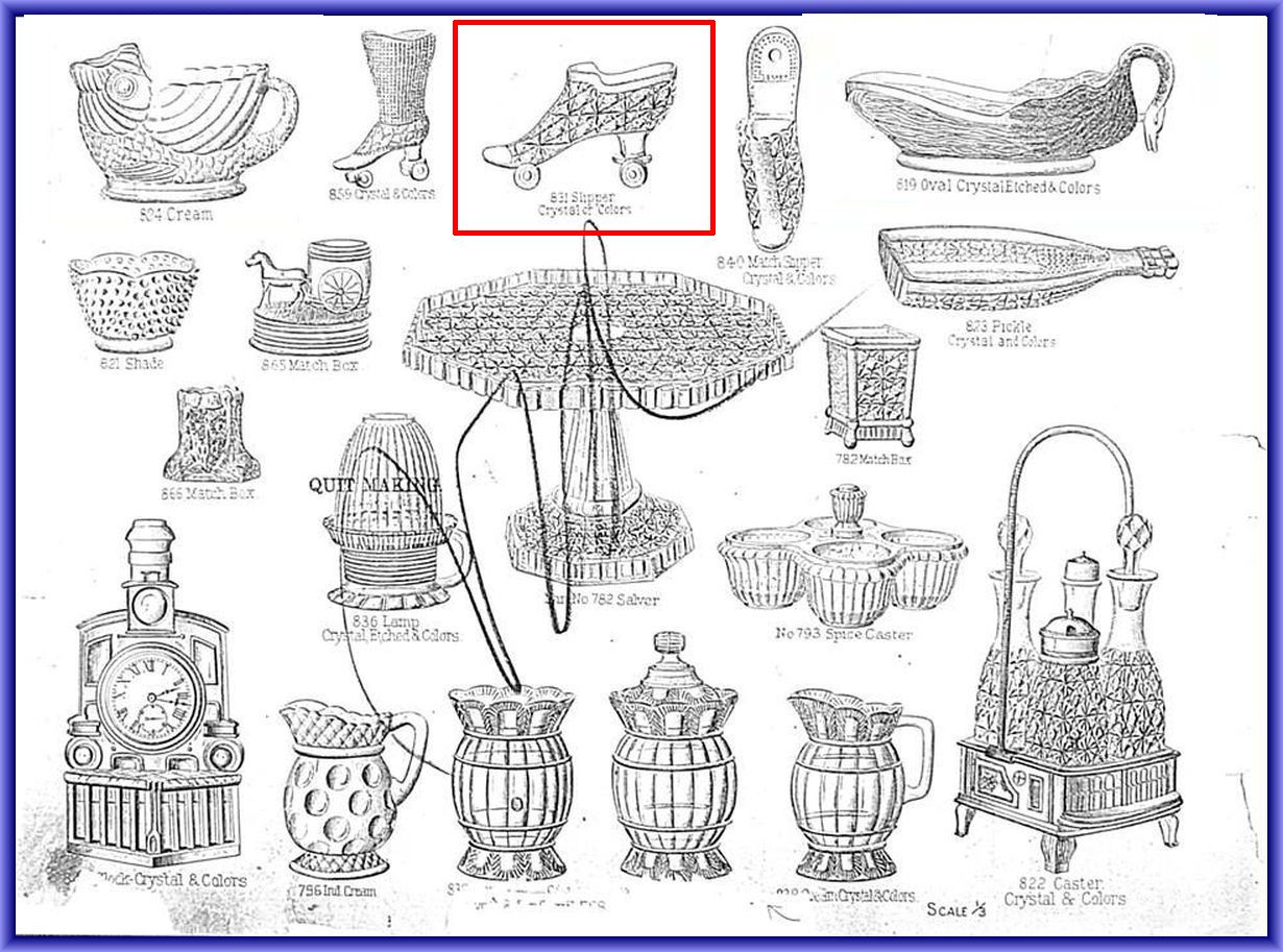 CENTRAL GLASS CO. No. 831 SLIPPER (OMN) by Central Glass Company/Wheeling-WV (Company Operated: 1867-1891), 1887 Introduced