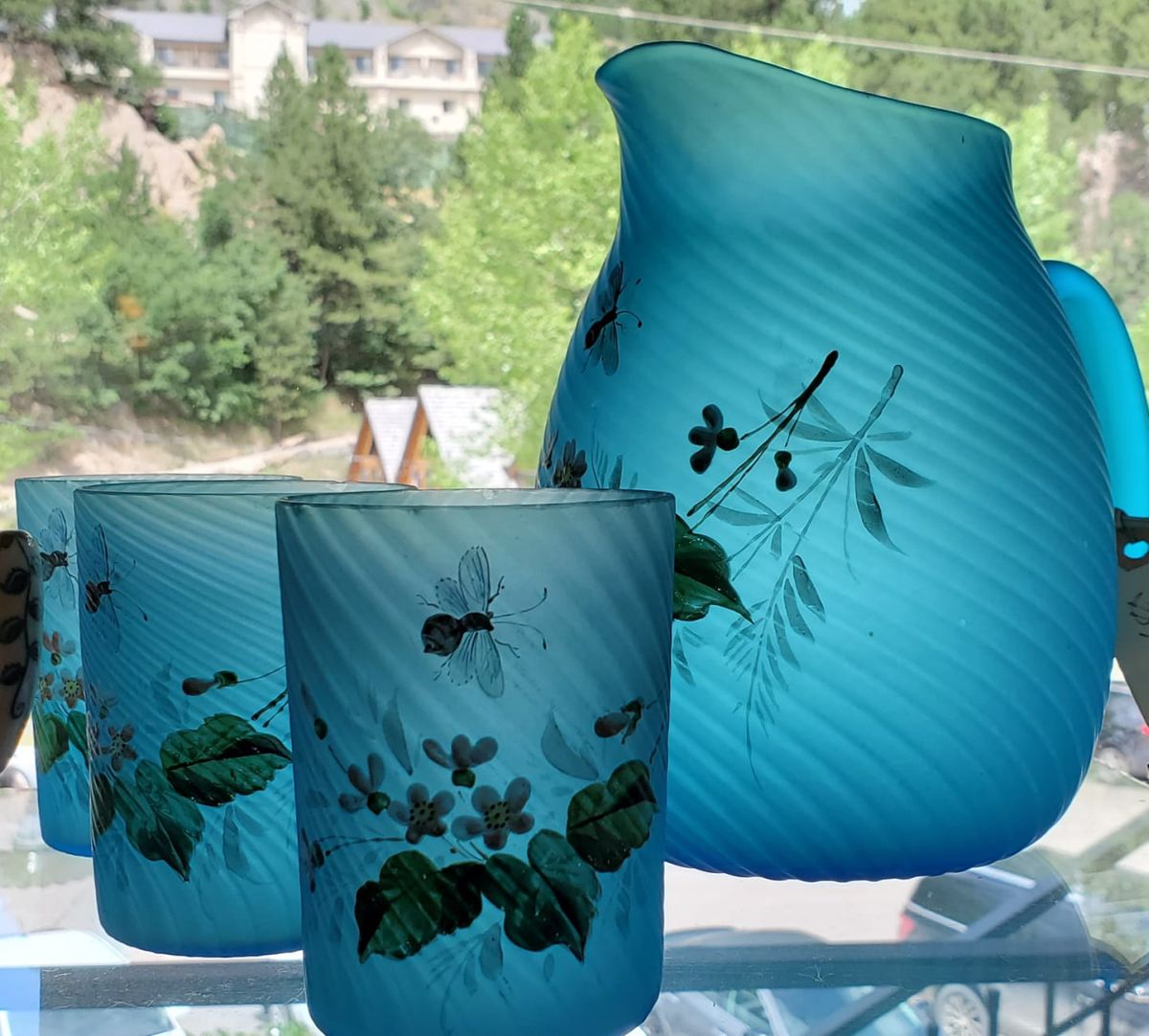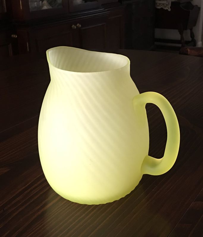 Contributor: Carol Linxwiler Bruce assorted Murano pieces with several Satina Swirl (No. 333) cruets and shakers