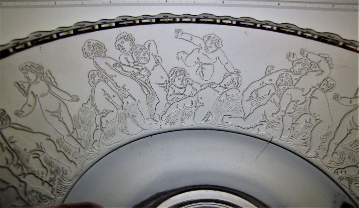Contributor: Ginny Belcer 9 3/4"L x 5 1/4" W x 1 1/2"T. Rim detail is similar to some Dithridge pieces (Especially Boar Hunt)