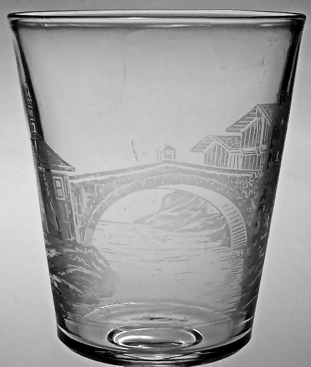 ETCHING: BRIDGE AND MONASTERY (AKA) by Gillinder & Sons Incorporated/Philadelphia,Greensburg-PA(Operated: 1863-Today), c1882 Introduced