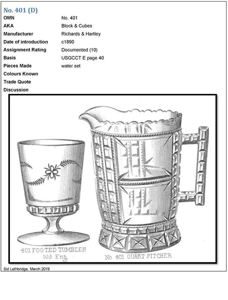 RICHARDS AND HARTLEY GLASS CO. No. 401 (OMN) by Richards & Hartley Glass Company/Pittsburgh, Tarentum-PA (Co. Operated: 1865-91), c1890 Introduced