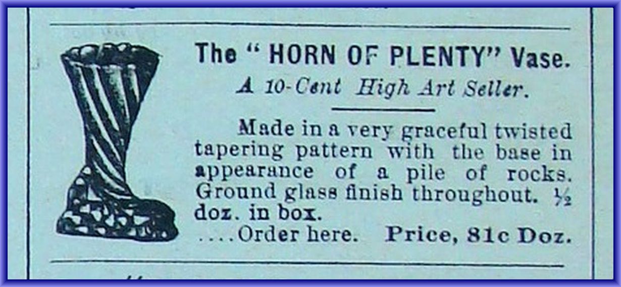 NOTE: Sid Lethbridge - This vase appears in Butler Bros. wholesale catalogues in 1892. Maker not documented.