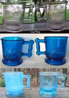 NOTE: Ref: Pg. 14 and 16 of Pattern Glass Mugs by Adams & Mordock. This mug was made in clear, blue, opaque white and opaque blue. It has been extensively reproduced, often marked with a Degenhart logo.