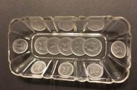 • NOTE: Sid Lethbridge: US Glass introduced No. 15005 to the market in October 1891 from their Factory O (former Central Glass factory) and Factory H (former Hobbs factory). Although the design concept must have started before the inception of US Glass in August 1891, the pattern was in fact introduced by US Glass. Silver Age is referenced in a trade journal report so it appears to be the OMN. The moulds were destroyed in early June 1892. Columbian Coin is an AKA for US Glass No. 15005 1/2 which a September 1892 trade journal report stated would be made at Plant N (former Nickel Plate factory) as the World's Fair pattern.